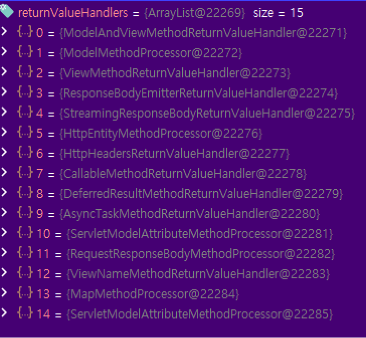 핸들러 메서드는 이미 실행하였으므로, 이제 반환값을 처리할 수 있는 ReturnValueHandler를 찾을 차례이다.